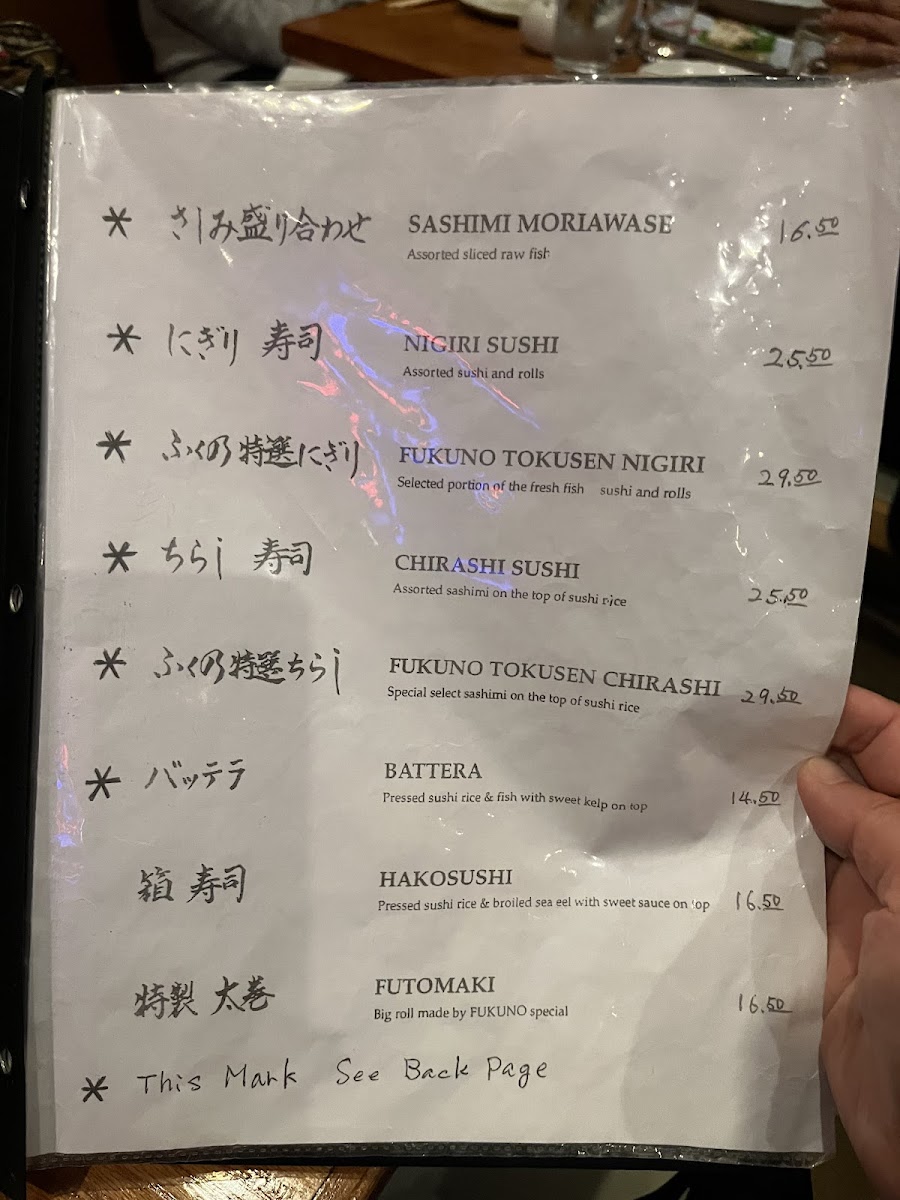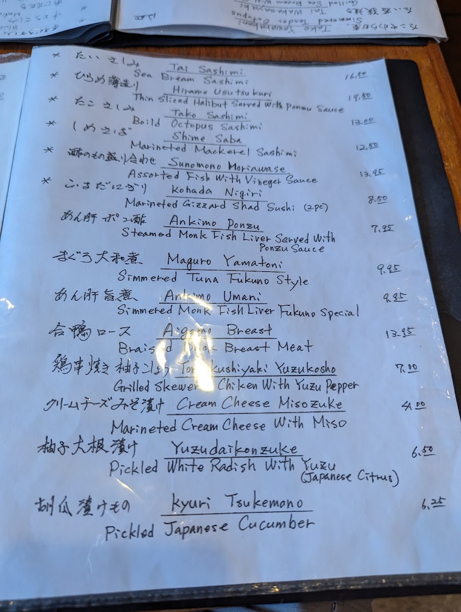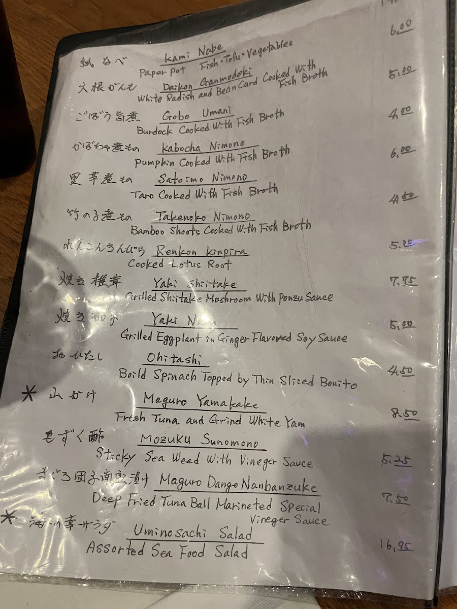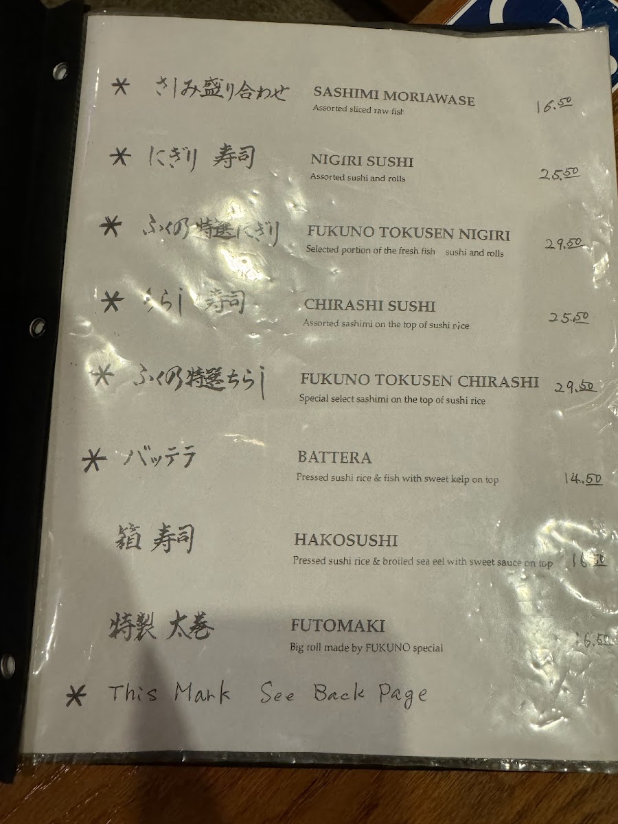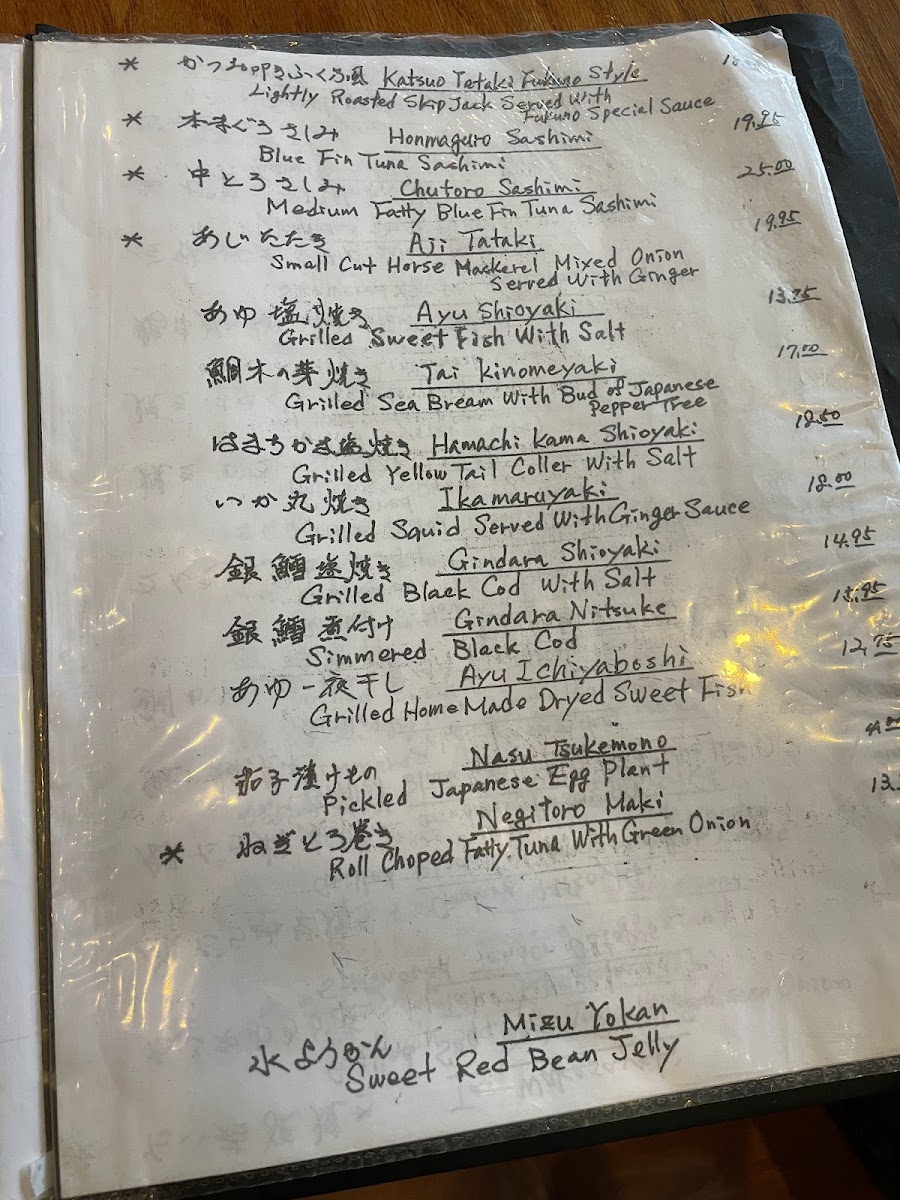 Fukuno Restaurant offers a diverse and delicious selection on its menu, perfect for those seeking traditional Japanese dishes. The Fukuno Special Bento Box stands out as a hearty option, featuring an assortment of flavors and textures, ideal for a satisfying meal. For sushi lovers, the Pressed Sushi Mackerel, Pressed Sushi Salmon, and Pressed Sushi Shrimp provide unique, compact bites of fresh seafood. The restaurant also serves some delicious traditional appetizers such as Maguro Yamakake, a creamy tuna dish, and Ohitashi, a flavorful dish of seasoned greens. For a smoky, grilled taste, Yakinasu, grilled eggplant, and Yakishiitake, grilled shiitake mushrooms, are excellent choices. Additionally, the Geso Shioyaki, a dish of salted deep-fried squid tentacles, is a must-try for those looking to explore bold flavors. With a range of flavorful options at reasonable prices, Fukuno Restaurant delivers a true taste of Japanese cuisine.